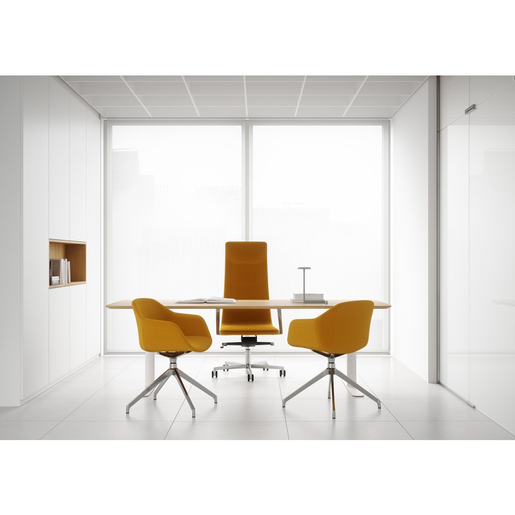 Čalúnené otočné kreslo prináša pohodlie a štýl do kancelárie aj rokovacej miestnosti.