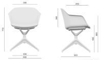 - sedadlo: výška sedadla po zaťažení 420 mm | šírka sedadla 450 mm | hĺbka sedacej plochy 440 mm | hĺbka sedenia 450 mm