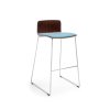 Jemne tvarovaná a pohodlná drevená barová stolička, korpus z ohýbanej bukovej preglejky vo farbe a povrchovej úprave podľa výberu, čalúnený panel na sedadle, oceľová podnož typu lyžiny s opierkou nôh, výška sedu 80 cm