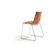 Elegantná stolička so subtílnym dizajnom, podnož je oceľová v prevedení chróm, korpus je plastový - farba podľa výberu