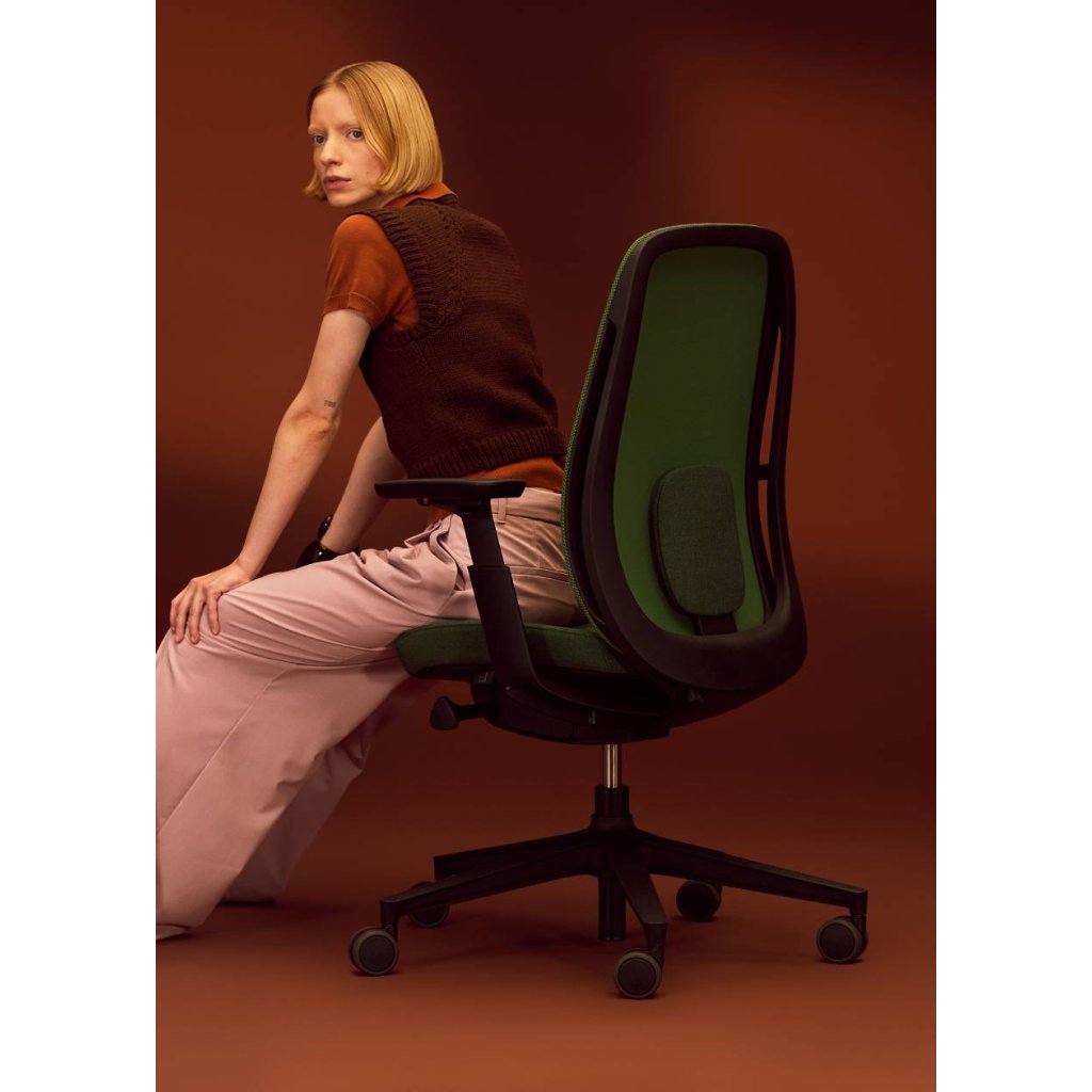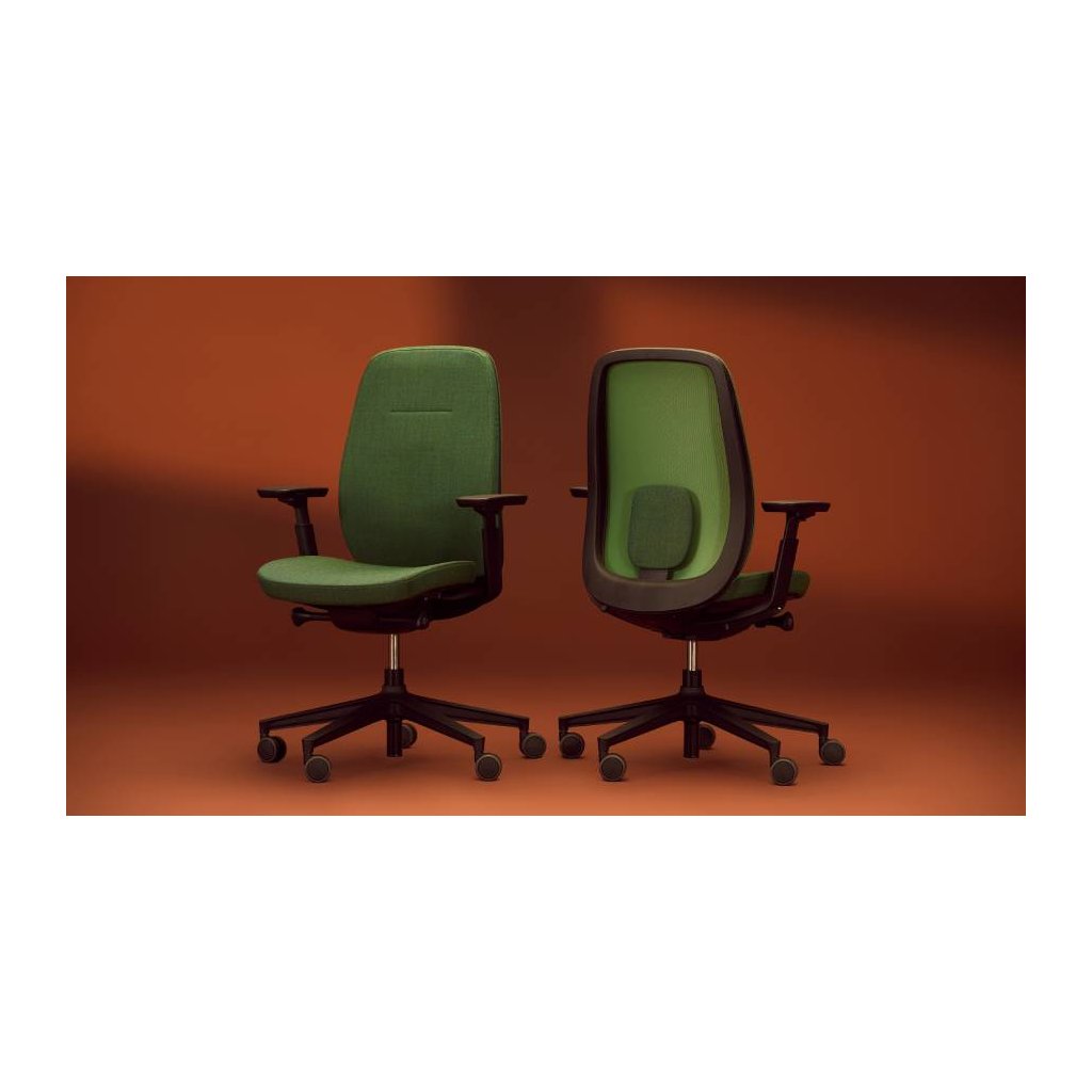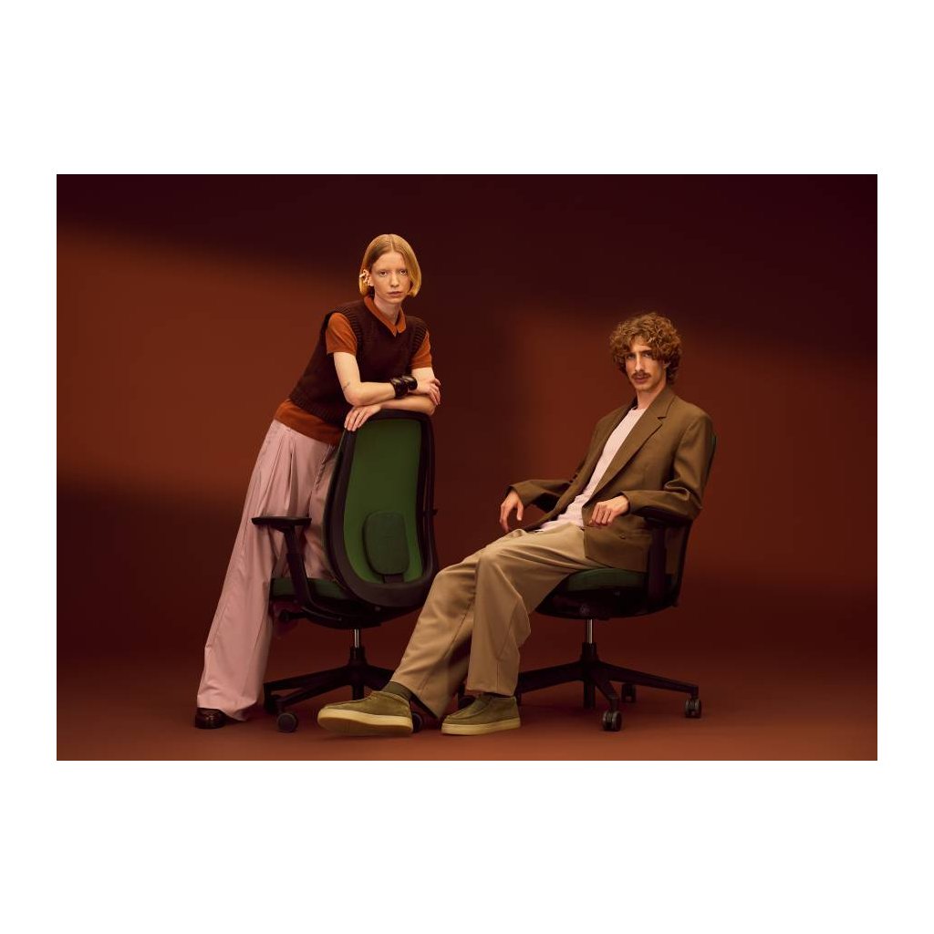 - operadlo - pružný rám vyrobený z 70 % recyklovaného polypropylénu a hlavný rám vyrobený z 65 % recyklovaného polyamidu (PA), operadlo pokryté sieťou String, Runner alebo Rhythm