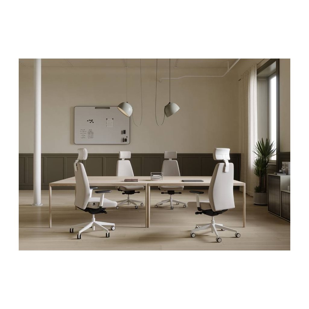 Kancelárska stolička ALVA prináša maximálne pohodlie a spoľahlivú oporu aj počas náročných pracovných hodín. Celočalúnené prevedenie kombinuje moderný štýl s funkčnosťou a dokáže sa prispôsobiť individuálnym potrebám každého používateľa a pracovného prostredia. Otočná pracovná stolička ALVA spája elegantný dizajn, ergonomické funkcie a komfort na každý deň. Vďaka výškovo nastaviteľnému operadlu, synchrónnej mechanike a voliteľným funkciám, ako je posuv sedadla, bedrová opierka či nastaviteľné podrúčky, zabezpečí pohodlné sedenie aj pri dlhých hodinách v kancelárii.
