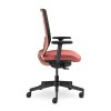 otočná kancelárska stolička s operadlom čalúneným čiernou sieťovinou, s dizajnovým tehlovo červeným rámom operadla, synchrónna mechanika AT