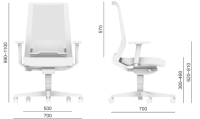 - základný rozmery stoličky: výška 990-1100 mm x šírka 700 mm x hĺbka 700 mm, výška sedadla po zaťažení 380-490 mm, výška operadla 580 mm (rozmer stoličky bez posuvu sedadla)