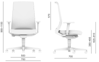 - rozmery stoličky (bez funkcie posuv sedadla): výška 990-1100 mm x šírka 700 mm x hĺbka 700 mm, výška sedadla 380-490 mm, výška operadla 570 mm