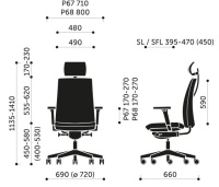 - P68 TPU - výškovo nastaviteľné podrúčky (rozpätie 100 mm). Posuvné nastavenie podložky vpred a vzad (rozsah +/- 50 mm), s nastaviteľným rozpätím (+/- 27 mm), otočné nastavenie podložky (+/- 33°). Mäkká termo-polyuretánová (TPU) podložka pod lakťami.
