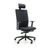 Kancelárska stolička otočná a výškovo nastaviteľná, čalúnená tkaninou podľa výberu, opierka hlavy, nastavenie pružnosti operadla podľa hmotnosti užívateľa, synchrónna mechanika s posuvom sedadla, základňa s kolieskami alebo klzákmi, ponúka ergonomické sedenie pri práci