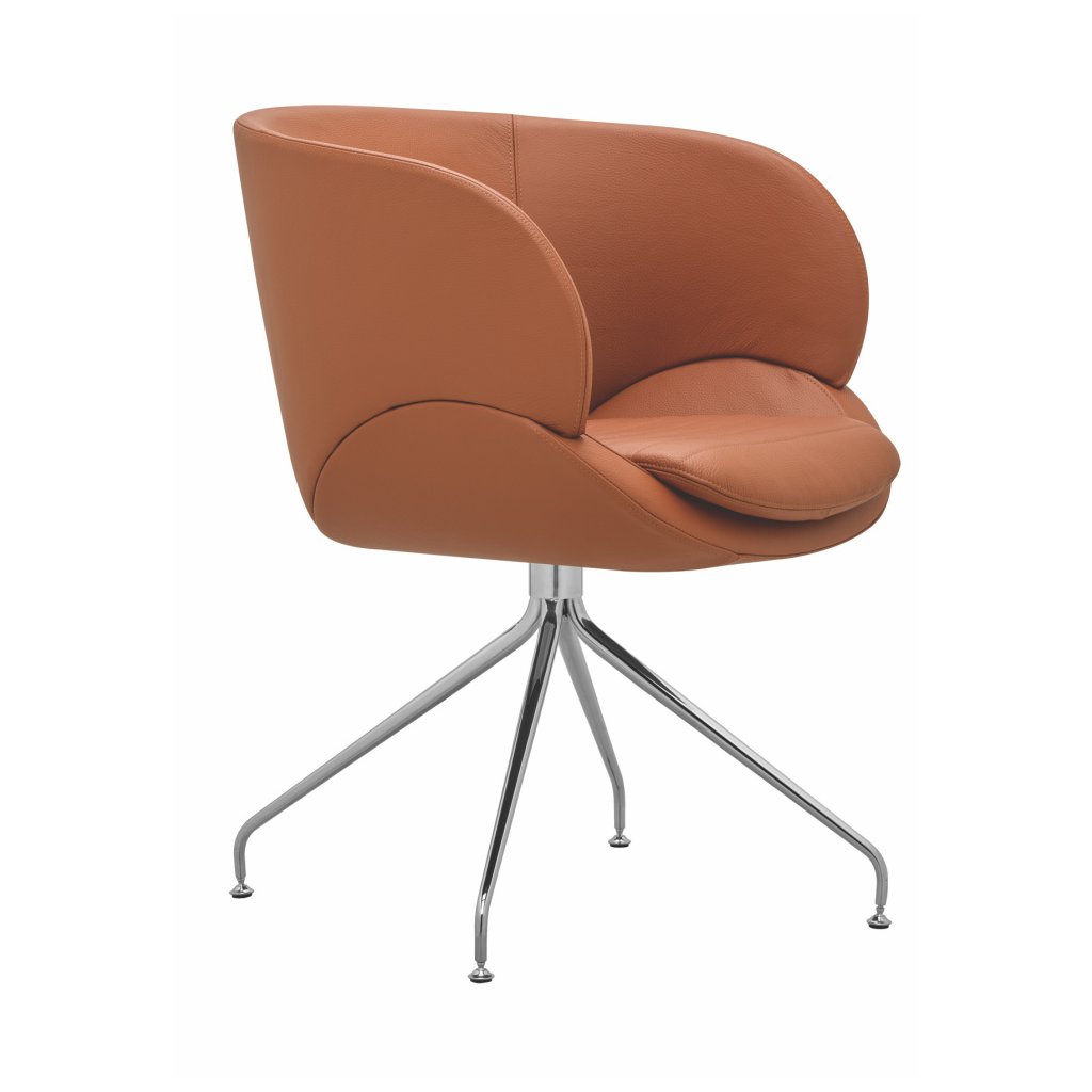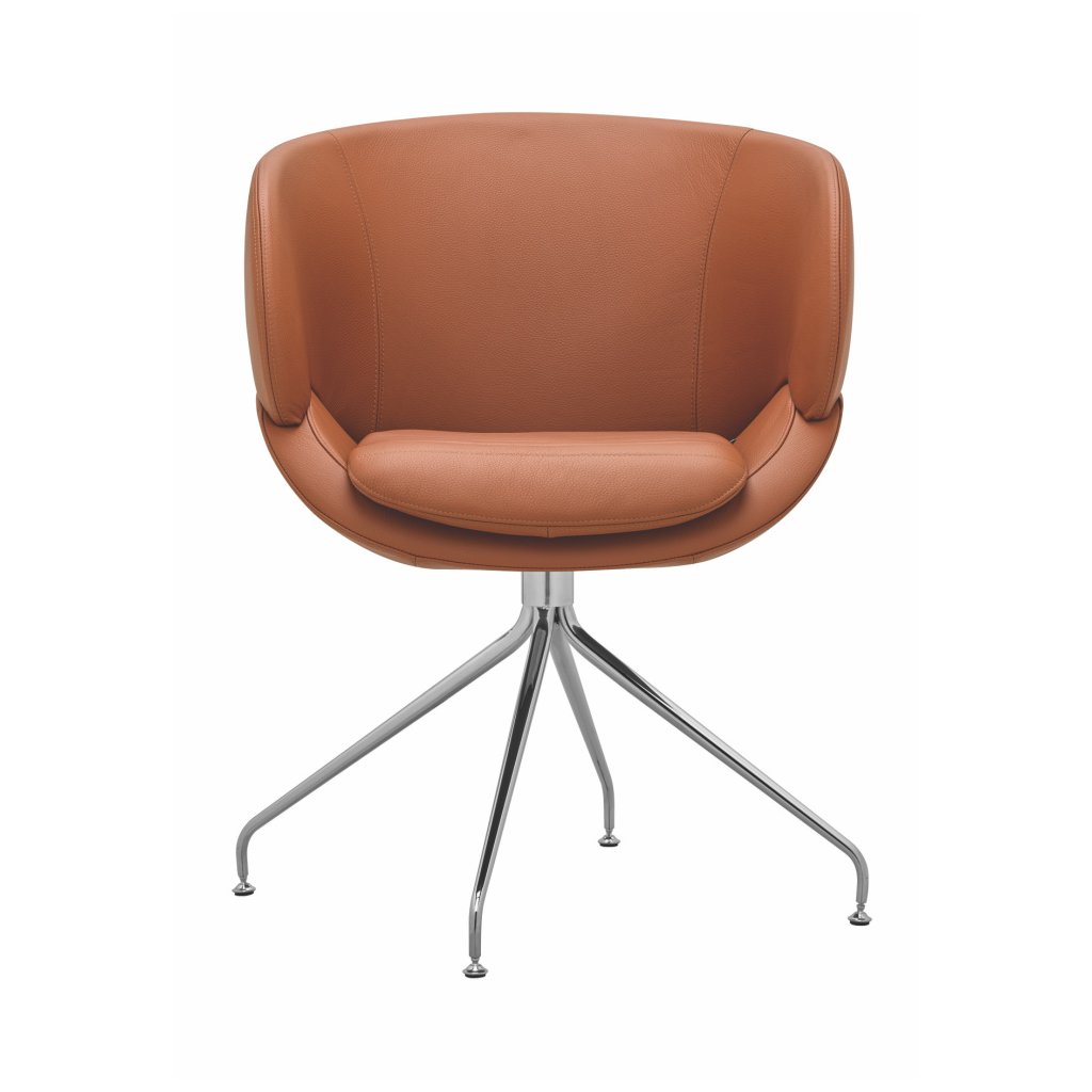 moderné celočalúnené otočné kreslo oblých tvarov s podrúčkami, kovová 4-ramenná podnož, farebné prevedenie podľa výberu