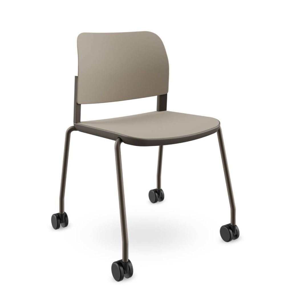 - podnož: oceľová, štvornohá ukončená kolieskami – povrchová úprava prášková farba - čierna, sivá, bronzová/hnedá a šalviovo-zelená - farba prispôsobená zvolenému plastu na operadle/sedadle