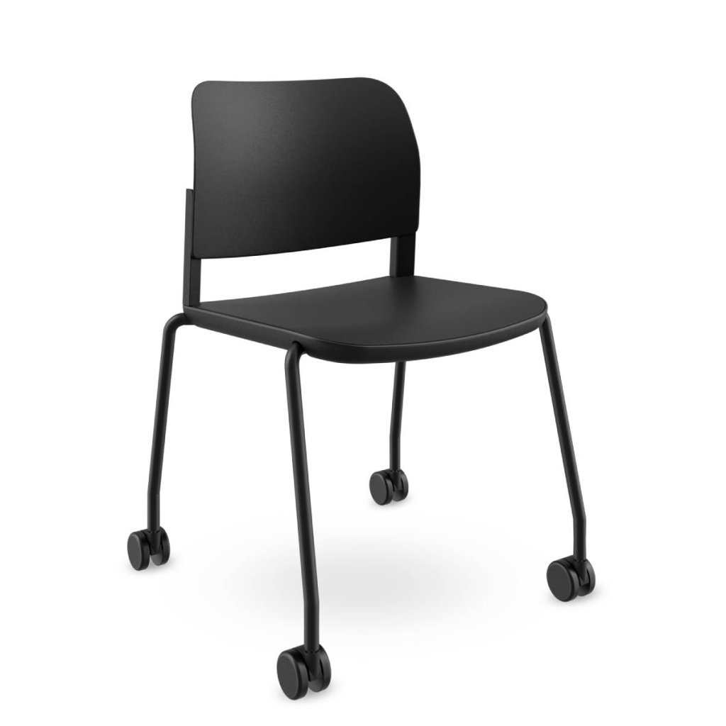 - plastová konferenčná stolička s kolieskami; stohovateľná