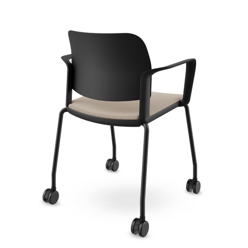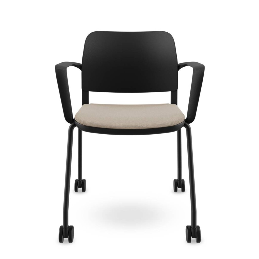 - mobilná konferenčná stolička s podrúčkami, plastovým operadlom a čalúneným sedadlom; stohovateľná