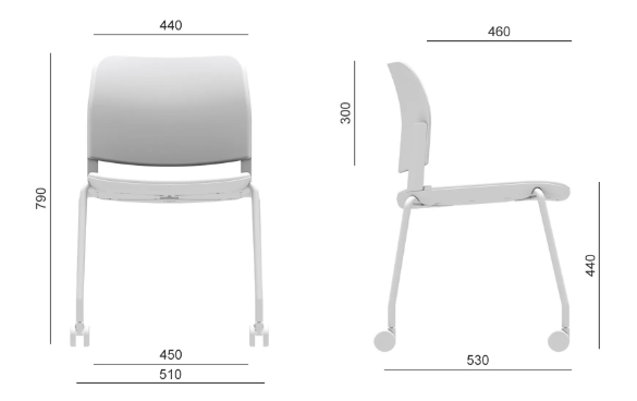 Stoličky stoja na štvornohej podnoži, ktorú ponúkame v štyroch farbách – čiernej, sivej, bronzovej a šalviovo zelenej. Na výber sú verzie s kolieskami alebo bez nich. Plastové korpusy sú dostupné v piatich atraktívnych odtieňoch – čiernej, hnedej, zelenej, šedo-bielej a šedo-modrej. Pre väčší komfort môžete zvoliť čistú plastovú verziu, model s čalúneným sedadlom alebo variant s čalúneným sedadlom aj operadlom. Funkčnosť zvyšujú praktické doplnky – podrúčky, sklopný stolík alebo spojovacie klipy na radenie stoličiek do radov. Všetky modely sú plne stohovateľné, čo umožňuje jednoduché skladovanie aj prevoz na praktickom prepravnom vozíku. Každý detail stoličiek bol navrhnutý tak, aby sa materiály využívali efektívne, s minimálnym odpadom, no bez kompromisov v odolnosti a pohodlí.