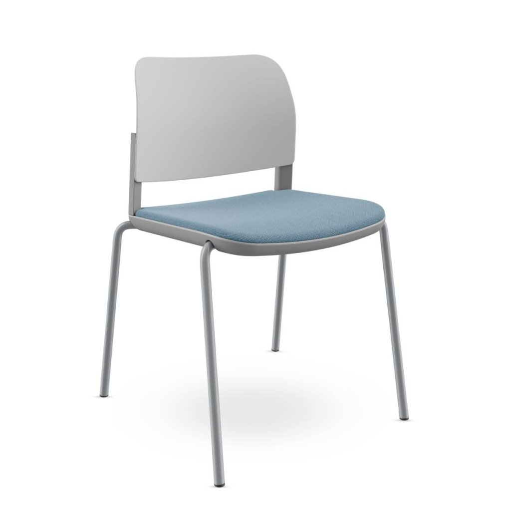 Stolička s plastovým operadlom a čalúneným sedadlom do kancelárií, prednáškových sál a čakární.
