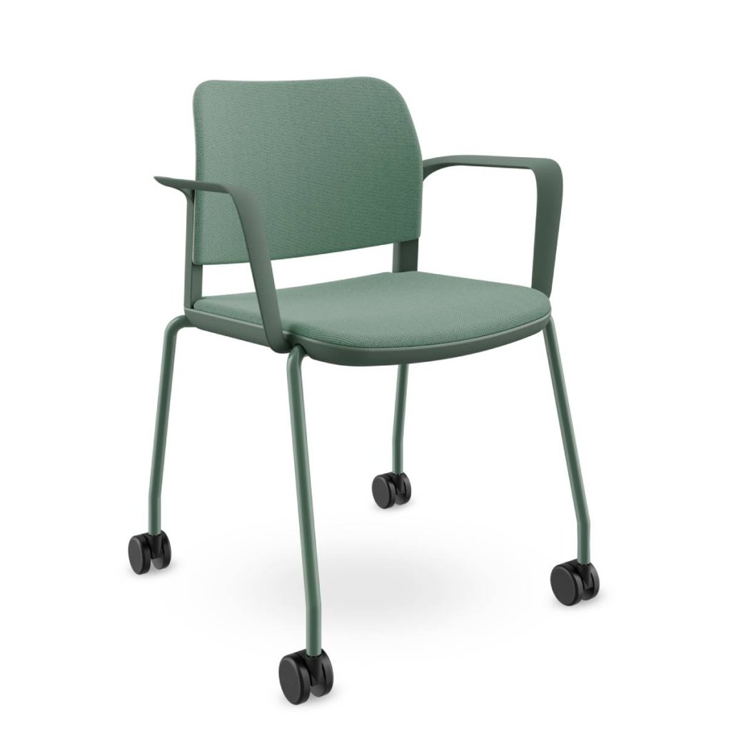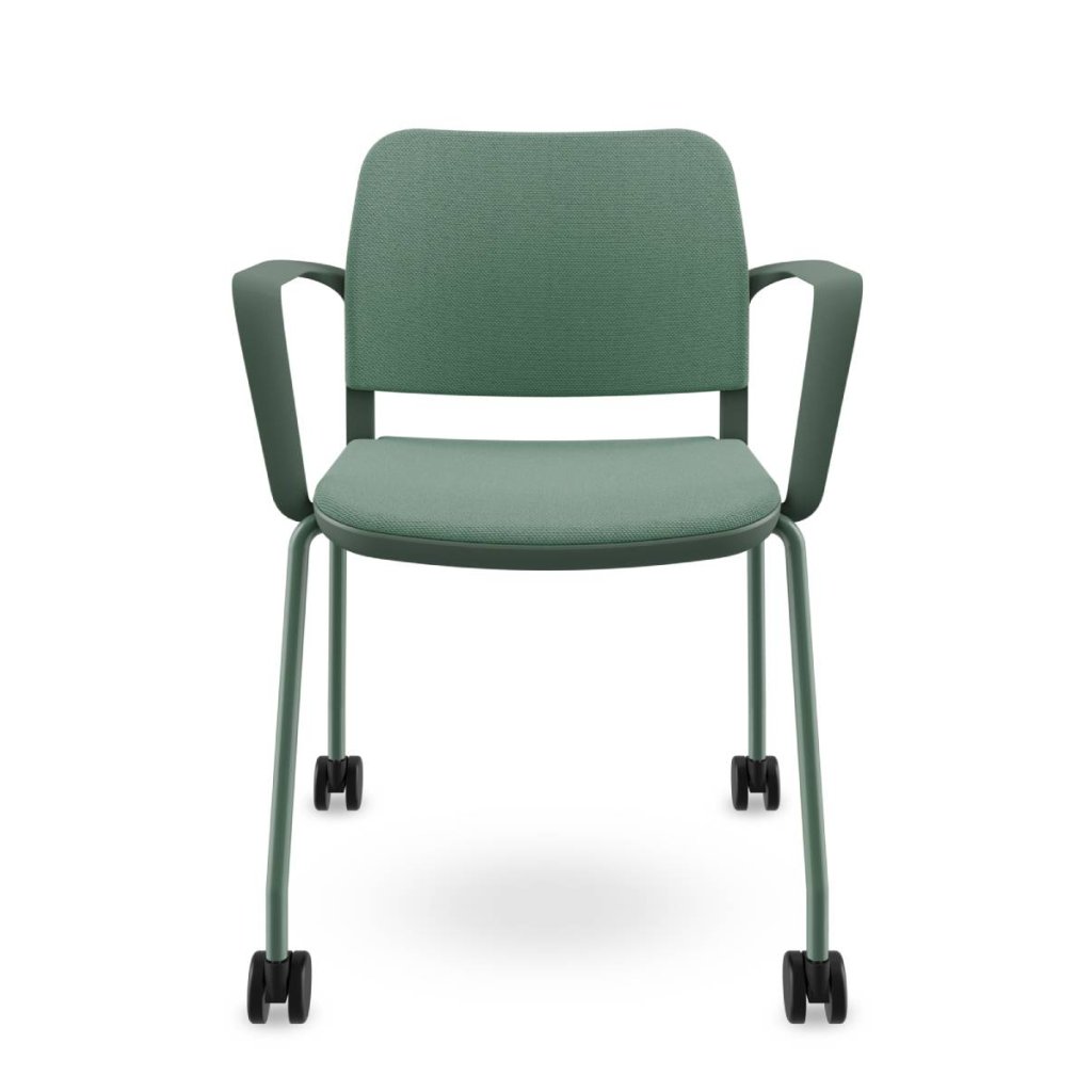 - čalúnená konferenčná stolička s podrúčkami na kolieskami ; stohovateľná