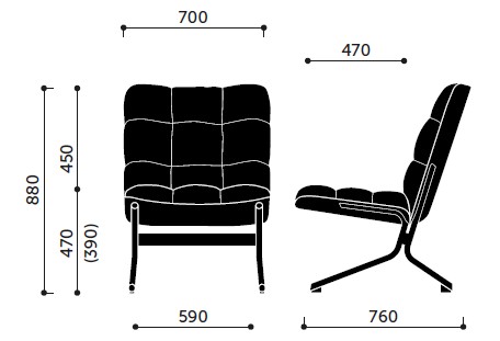 - výška sedu: 470 mm | po zaťažení 390 mm