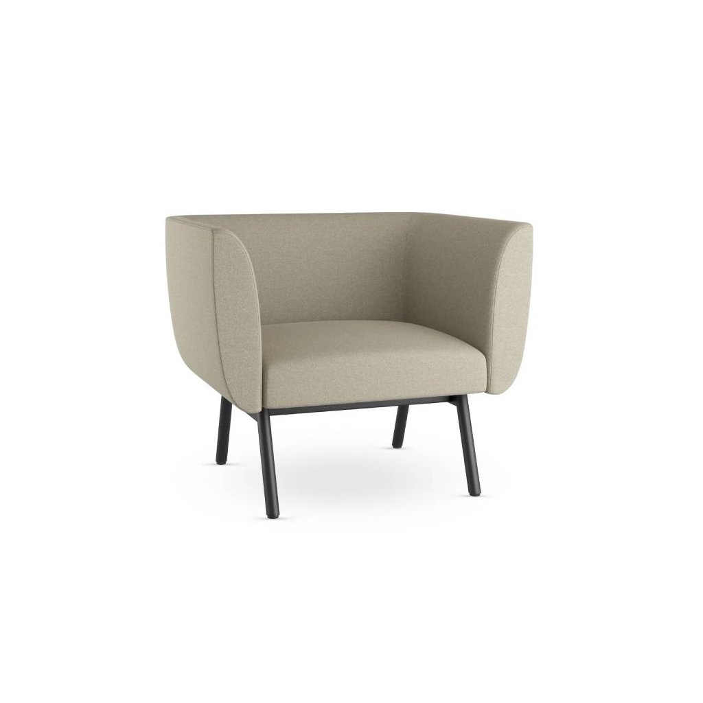 Čalúnené kreslo s čiernou kovovou podnožou - pre kancelárie, recepcie a iné verejné priestory.