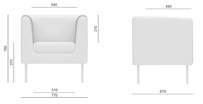 - celkový rozmer: výška 760 mm | šírka 770 mm | hĺbka 670 mm | výška sedadla po zaťažení 370 mm