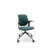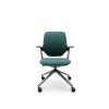 Moderná a pohodlná kancelárska stolička, otočná, plastové operadlo s čalúneným panelom, pevné opierky rúk, samonastaviteľná synchro-mechanika, vysoký 4-ramenný hliníkový kríž s kolieskami alebo klzákmi, univerzálna a minimalistická stolička pre vaše pohodlie v kancelárii, zasadačke alebo domácej pracovni