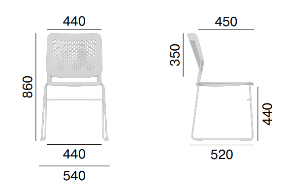 - plastové operadlo a sedadlo; na pohľad subtílne operadlo je veľmi pevné, vyrobené z polypropylénu vystuženého sklenenými vláknami