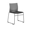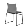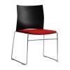 Plastová stolička s čalúneným sedadlom a plastovým operadlom na tenkom vysokopevnostnom kovovom ráme. Moderný a ľahko pôsobiaci dizajn zaručujúci kvalitné a pohodlné sedenie. Vhodná do verejných priestorov s multifunkčným využitím. Stolička spĺňa vysoké nároky na stohovanie (až 45 ks na transportnom vozíku).