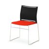 Univerzálna stolička s plastovým sedadlom a čiernym sieťovaným operadlom na tenkom kovovom vysokopevnostnom ráme. Moderný a ľahko pôsobiaci dizajn zaručujúci kvalitné a pohodlné sedenie. Vhodná do verejných priestorov s multifunkčným využitím. Stolička spĺňa vysoké nároky na stohovanie (až 45 ks na transportnom vozíku).