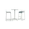 Záhradný barový stôl TAKU s podnožou z nehrdzavejúcej ocele ponúkame so stolovými doskami z odolného laminátu alebo keramiky v rôznych dekoroch vo veľkostiach Ø 700 mm a 700x700 mm. Stolové dosky sa dajú sklopiť pomocou praktického kovania. Všetko sú to nábytkové kúsky s nadčasovým dizajnom.