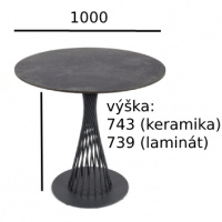 - rozmery: stolová doska Ø 1000 mm, výška 743 mm (keramika), 739 mm (laminát)