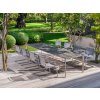 Rozťahovací záhradný jedálenský stôl s plynulým výsuvom spredu, stolová doska 95 x 200/260/320 cm z teakového dreva alebo keramiky, podnož z nehrdzavejúcej ocele a hliníka