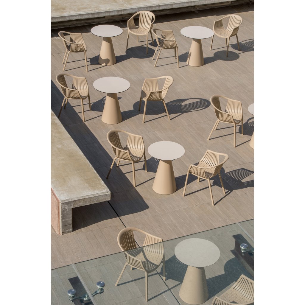Moderné kreslo TATAMI 306 je vyrobené z polypropylénu, je ľahké a zároveň stabilné a pevné. Vyznačuje sa stálofarebnosťou, odolnosťou voči UV žiareniu a dažďovej vode a preto je vhodné pre vonkajšie použitie, ale svoje uplatnenie nájde aj v interiéri. Stohovateľné. Eco-friendly, 100% recyklovateľné.