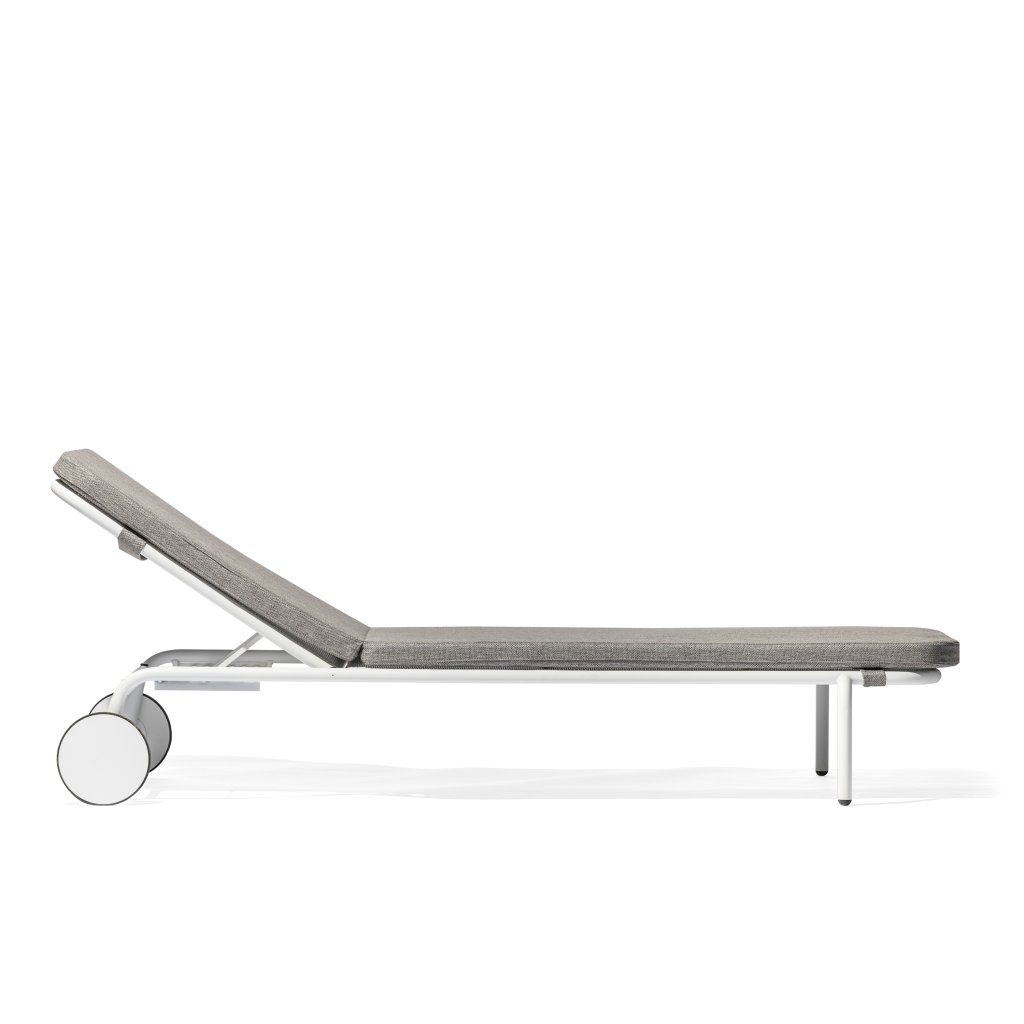 Dizajnové záhradné lehátko s polohovateľným operadlom, s kolieskami.