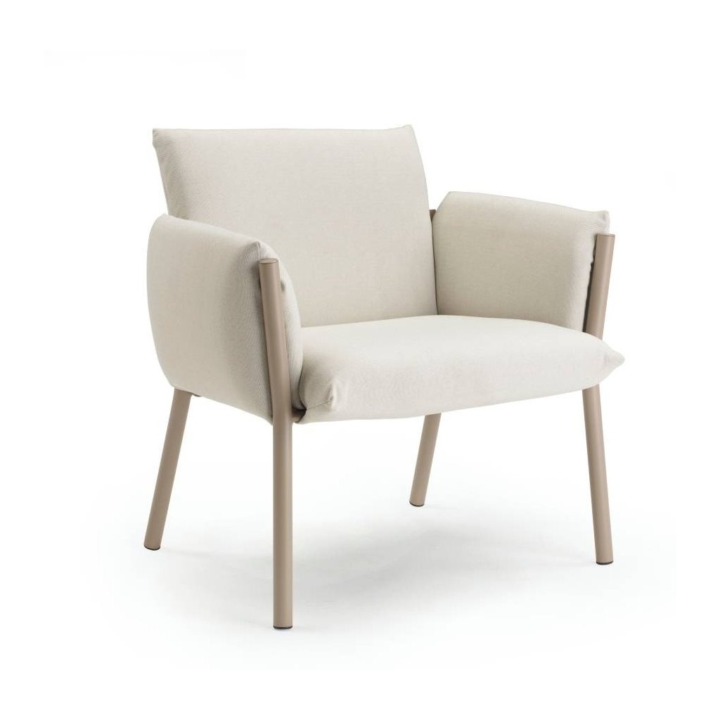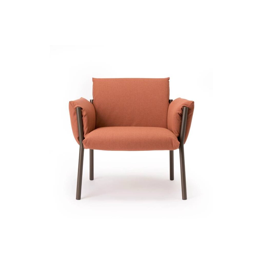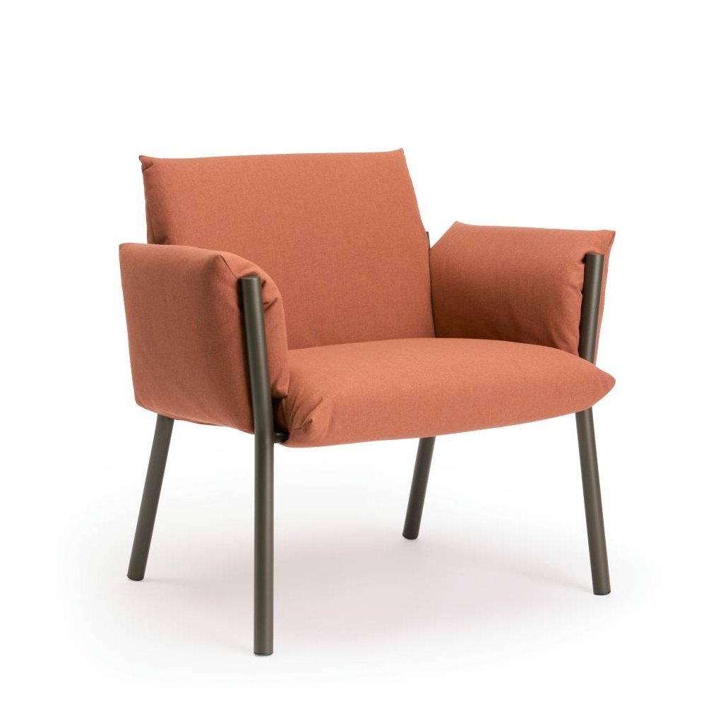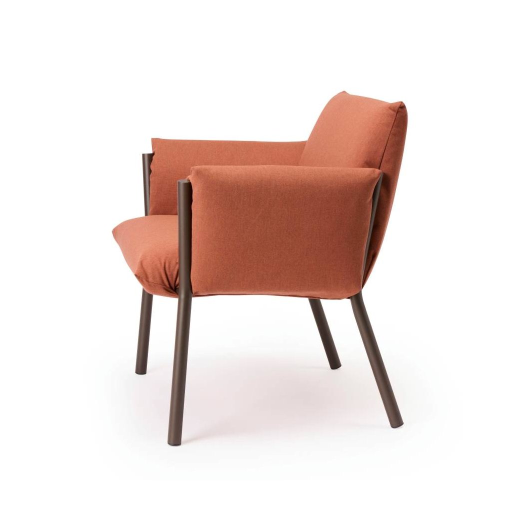 Záhradné lounge kreslo BREZZA LOUNGE 2901, navrhnuté dizajnérom Alessandrom Stabilem, spája odolnosť, eleganciu a vysoký komfort sedenia. Čalúnené diely sú precízne vsadené do kovového rámu a veľkorysé čalúnenie necháva vyniknúť štíhle kovové nohy s okrúhlym prierezom, ktoré kreslu dodávajú stabilitu a charakteristický vzhľad.