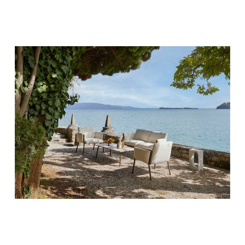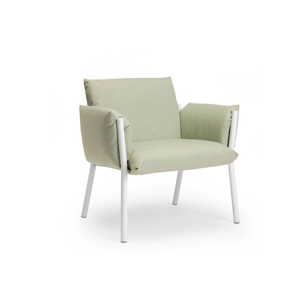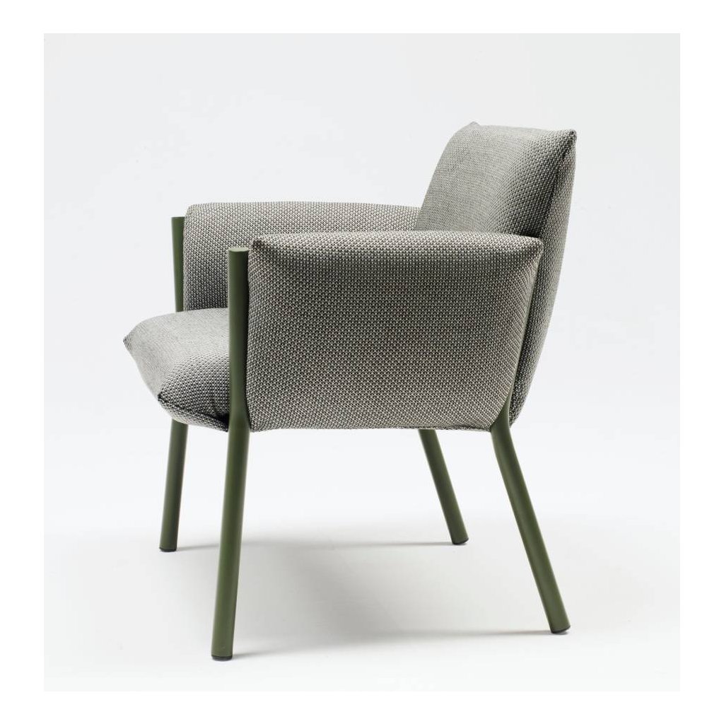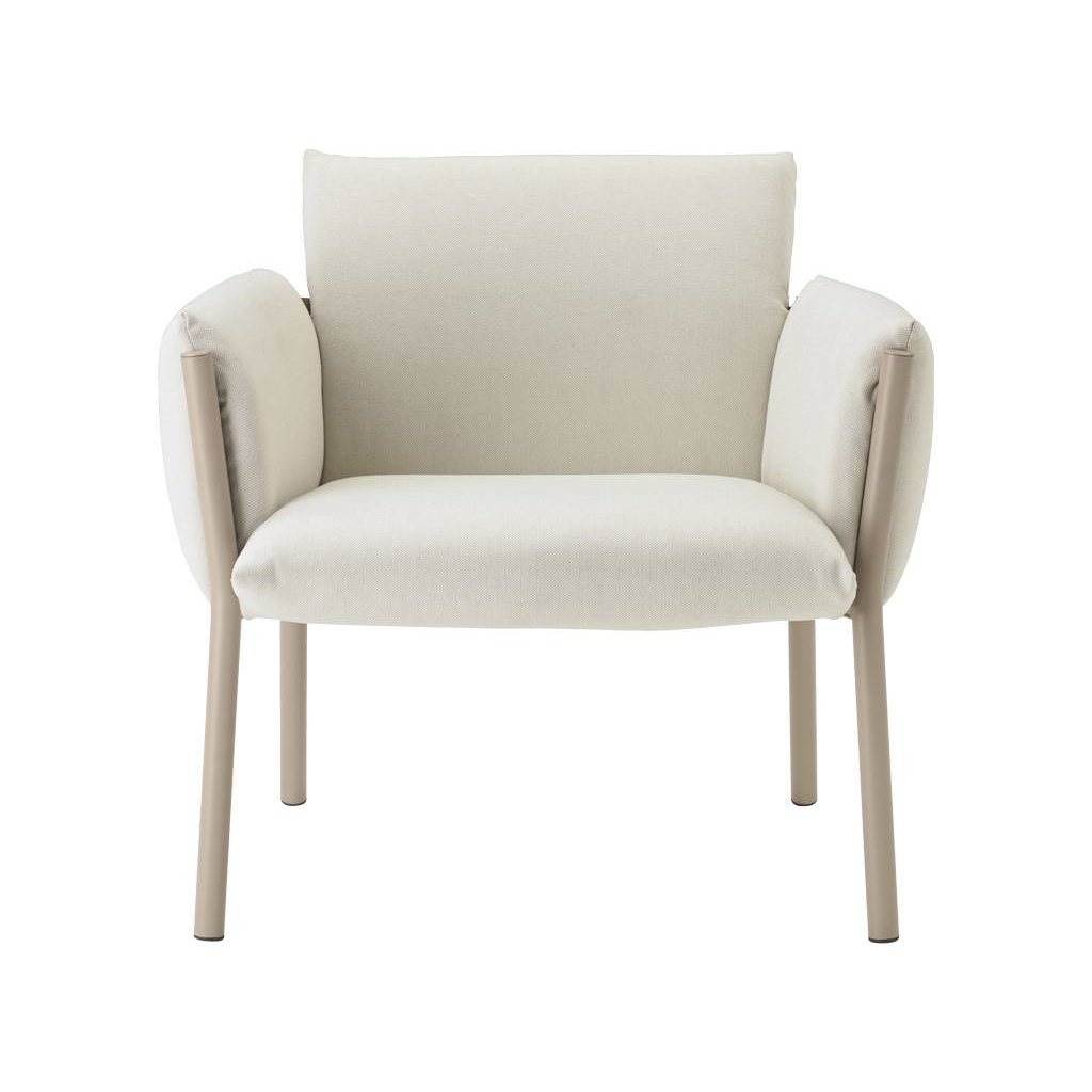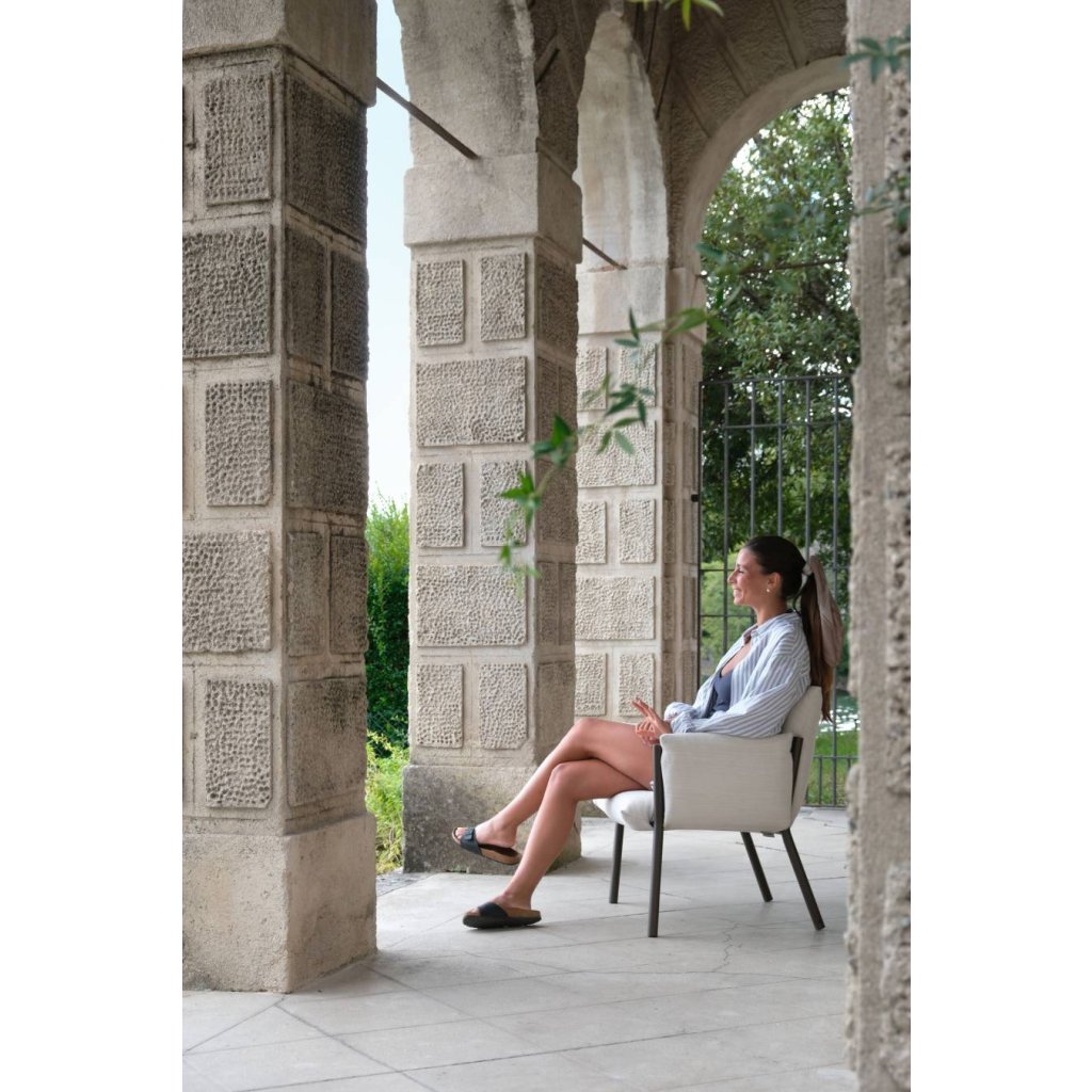 Záhradné lounge kreslo BREZZA LOUNGE 2901, navrhnuté dizajnérom Alessandrom Stabilem, spája odolnosť, eleganciu a vysoký komfort sedenia. Čalúnené diely sú precízne vsadené do kovového rámu a veľkorysé čalúnenie necháva vyniknúť štíhle kovové nohy s okrúhlym prierezom, ktoré kreslu dodávajú stabilitu a charakteristický vzhľad.