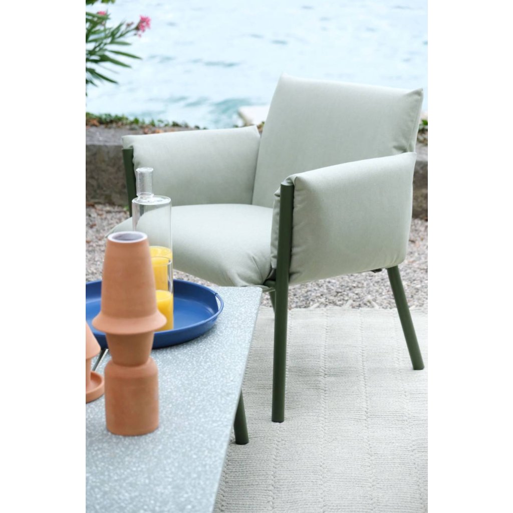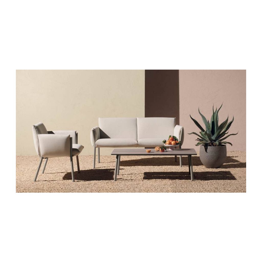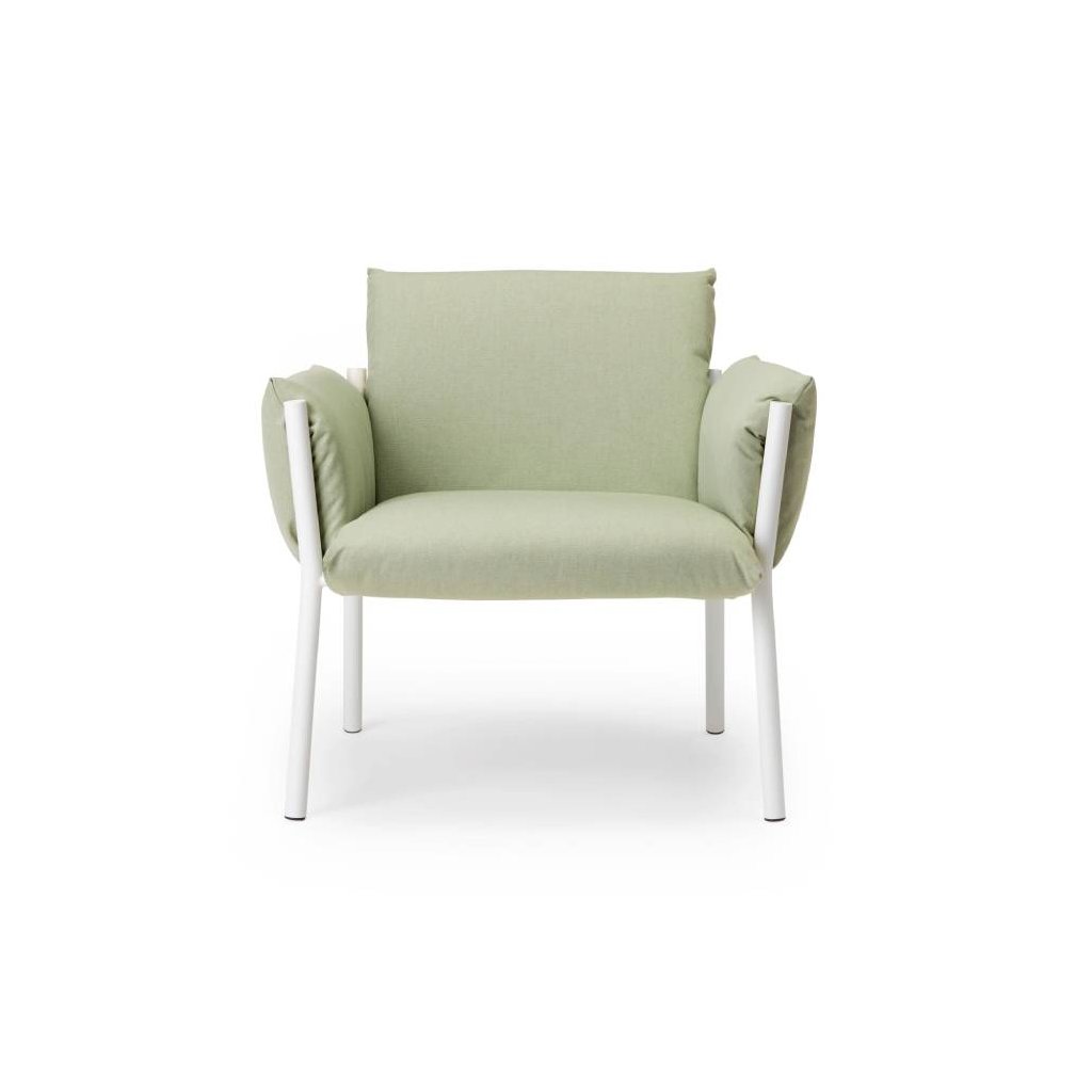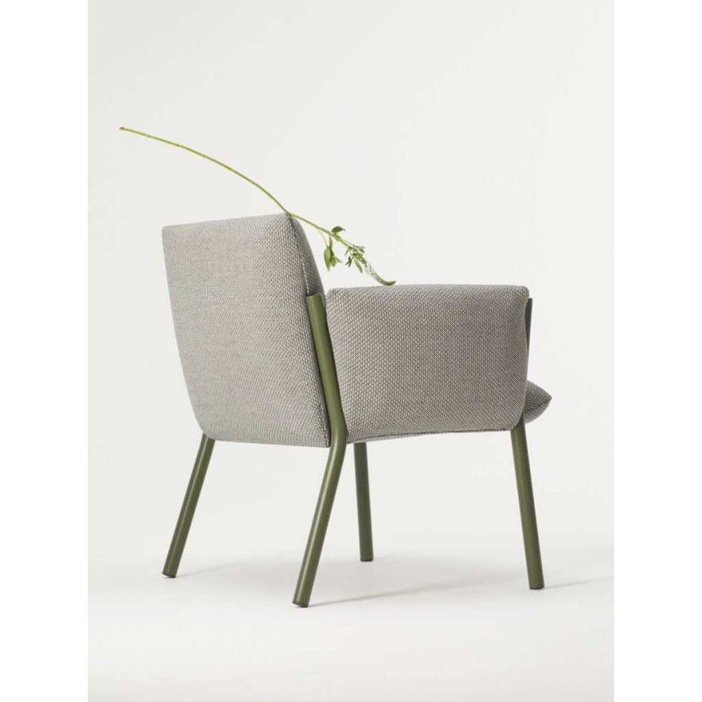 Záhradné lounge kreslo BREZZA LOUNGE 2901, navrhnuté dizajnérom Alessandrom Stabilem, spája odolnosť, eleganciu a vysoký komfort sedenia. Čalúnené diely sú precízne vsadené do kovového rámu a veľkorysé čalúnenie necháva vyniknúť štíhle kovové nohy s okrúhlym prierezom, ktoré kreslu dodávajú stabilitu a charakteristický vzhľad.